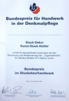 KUNST-STUCK ATELIER CHAUDOT, der offizielle Nachfolger der Staub OHG Hockenheim, führt das traditionelle Kunsthandwerk in seiner Manufaktur in Speyer weiter. Marcel Chaudot, früher Stuckhersteller und Werkstattleiter der Stuck Dekor Staub, übernahm 2011 einen der größten deutschen Stuckhersteller, und führt das Traditionsunternehmen seitdem erfolgreich fort. Stuck-Dekor, Stuckleisten Säulen als auch weitere Dekorelemente aus Alabastermodellgips produzieren wir nach Vorlage, oder Ihren ganz persönlichen Vorstellungen. Ganz gleich ob privat, öffentlich oder Industrie – bei KUNST-STUCK ATELIER CHAUDOT in Speyer erhalten Sie Stuckelemente von erstklassiger Kontur- und Passgenauigkeit. Lassen Sie sich von unserem Angebot inspirieren.